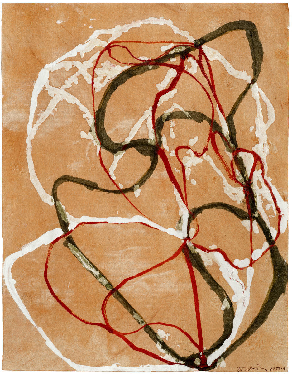 Colored shellac inks on laid paper. Image: 14 1/8 x 11 in. (35.9 x 27.9 cm). The Keith L. and Katherine Sachs Collection, Philadelphia Museum of Art, SCC-44. © 2016 Brice Marden / Artists Rights Society (ARS), New York