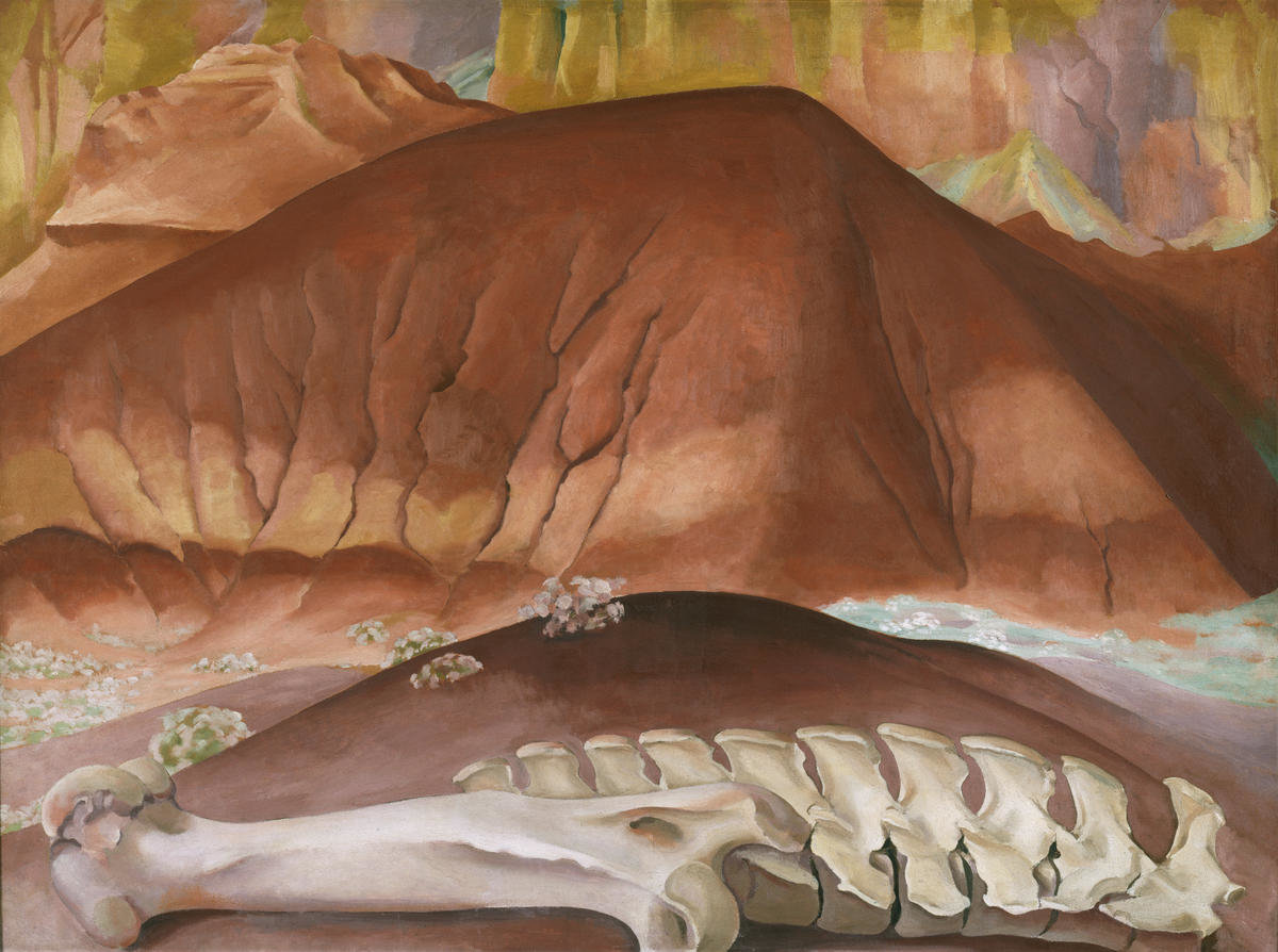 Georgia O'Keeffe began spending summers in New Mexico in 1929, and over the course of the next six decades she turned her brush to the richly colored scenery of the American Southwest. Here, red hills fill the canvas from edge to edge, while the bleached bones in the foreground reflect the hot, dry climate of the region. Like many of O'Keeffe's landscapes, this painting represents a location near her house, Ghost Ranch, distilled to poetic, abstracted shapes that reflect the monumentality she finds in even the simplest natural forms.