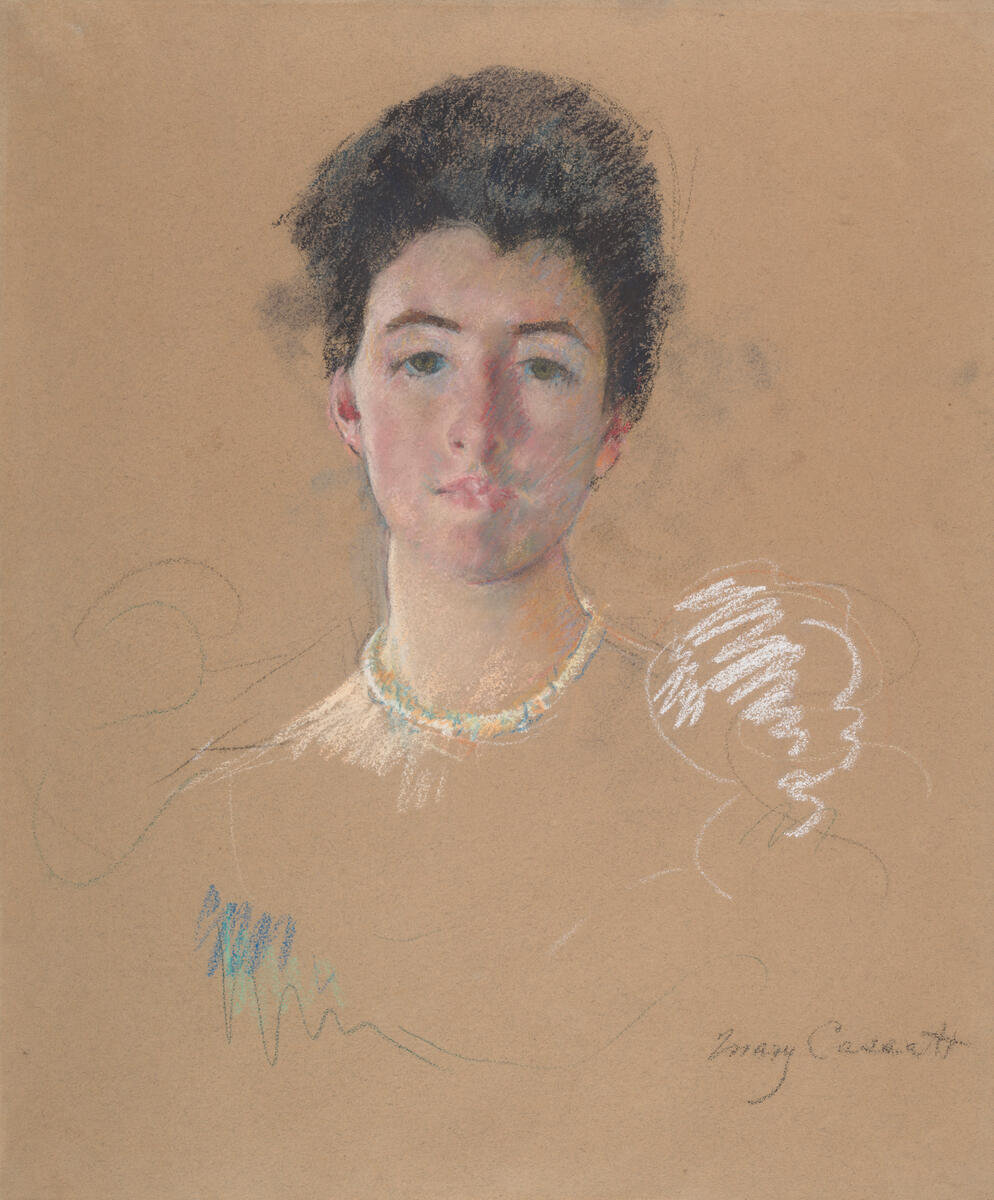 Portraits of friends and acquaintances abound in the work of Impressionist artist Mary Cassatt. This pastel marks a rare instance of a work completed while traveling in the United States, where Cassatt spent eighteen months, beginning in January 1898, after more than twenty years living in France. The work was given to the sitter as a token of friendship by the artist, but the unfinished quality of the pastel suggests the hurried nature of completing a drawing while traveling and away from one’s studio.